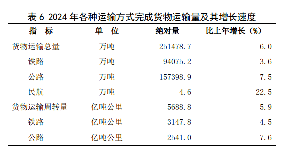 [15]货物运输总量及周转量包括铁路、公路、民航三种运输方式完成量,2024年增速按可比口径计算。