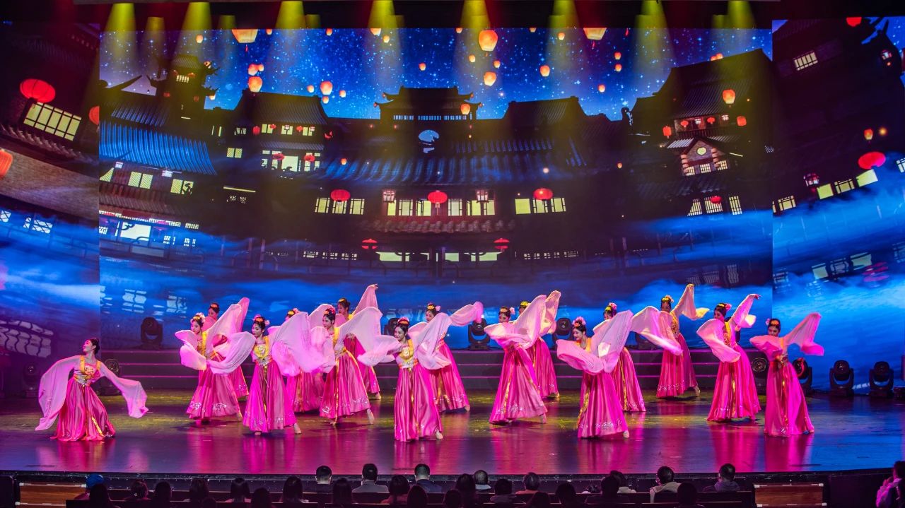 演出融朗诵、吟诵、声乐、器乐、舞蹈、书法、绘画等多种中华传统艺术形式于一体,有效地实现了多种艺术形式在同一审美空间的完美融合,呈现在声光电、多媒体、虚拟现实等时尚唯美的现代舞台上,从而展示了中华艺术“思与境偕”“物我两忘”“言有尽而意无穷”的境界,给与观众沉浸式的审美享受。