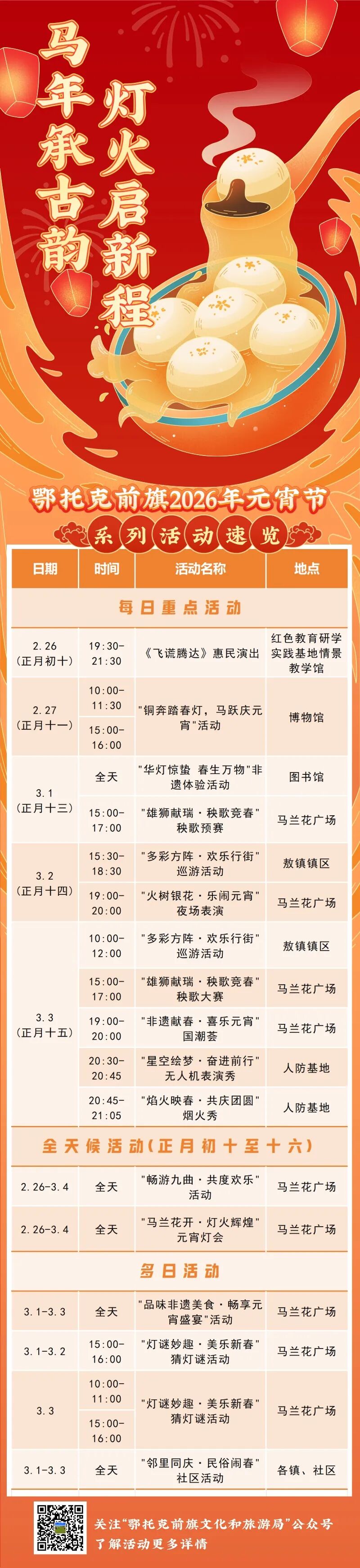 从初十嗨到十五!鄂托克前旗2026年元宵节群众文化活动安排出炉!一图速览时间线→