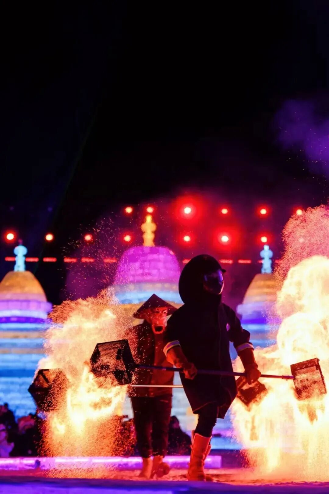 璀璨的铁花如星辰般在雪地上空绽放