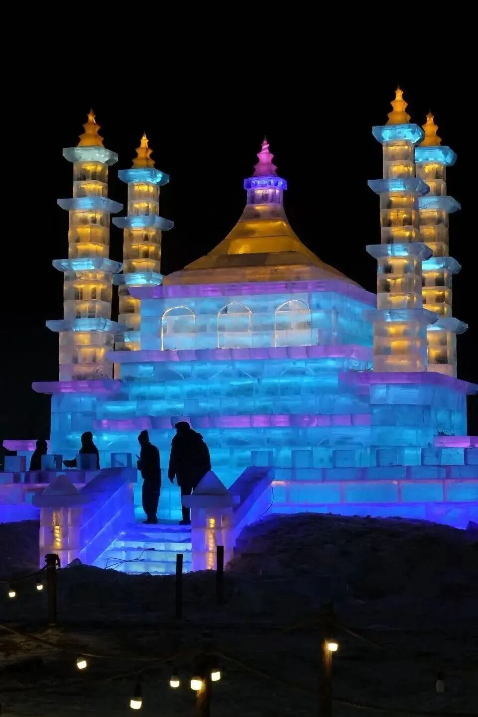 你可以穿梭在精致剔透的冰雕建筑之间