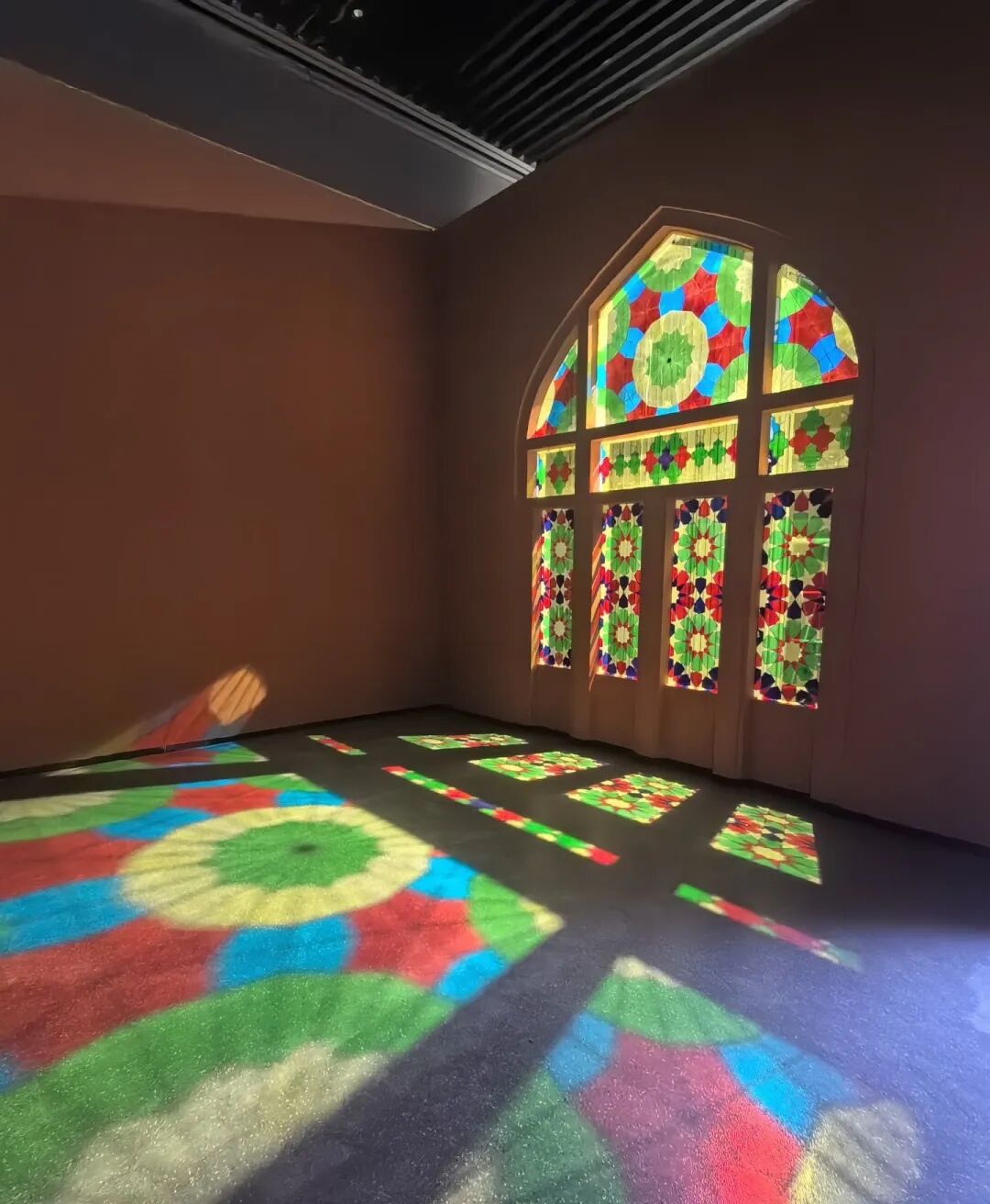 彩色玻璃在地面投射出流动的光斑,踩在彩虹色的光影里拍照,随便摆个姿势都像电影截图,氛围感直接封神。