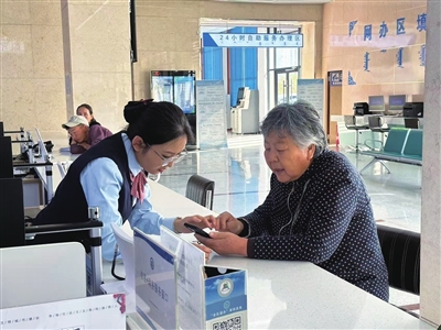 苏尼特左旗政务服务与数据管理局工作人员为不便出门的高龄老人、弱势群体提供上门服务。