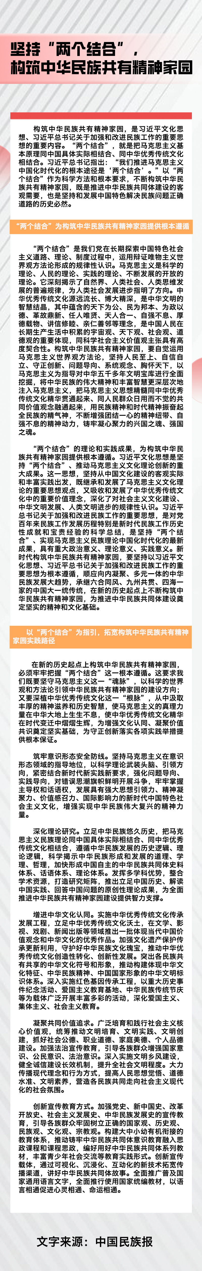 坚持“两个结合”,构筑中华民族共有精神家园