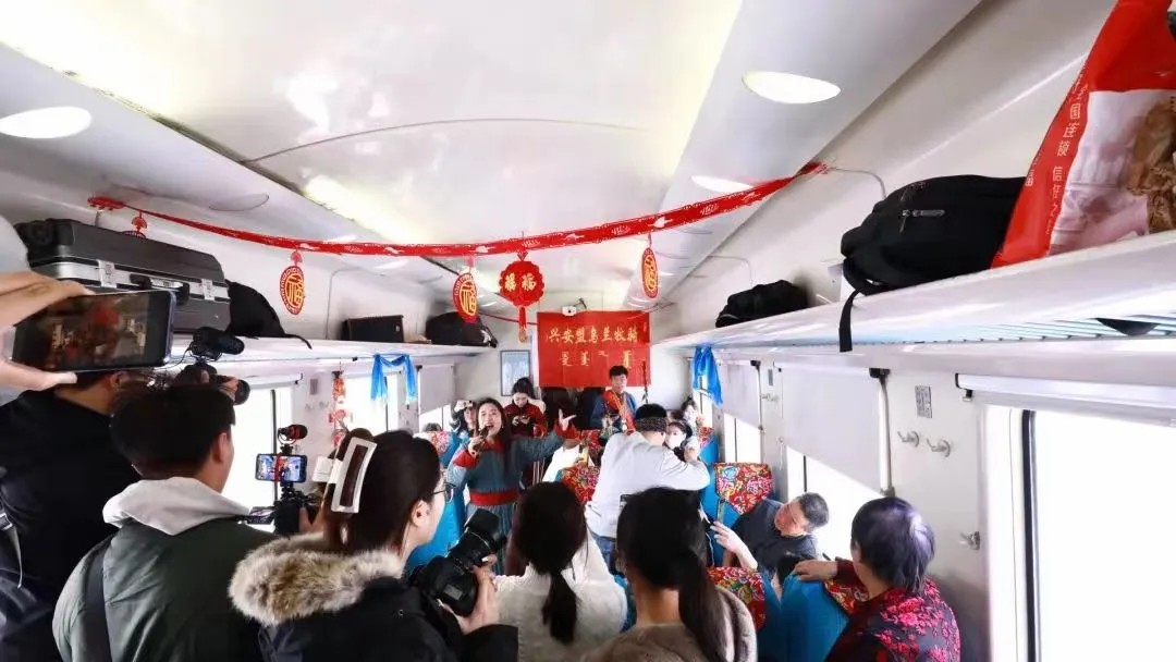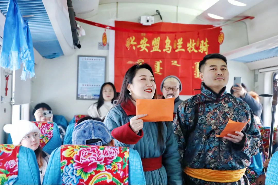 从乌兰浩特到阿尔山,“歌游内蒙古 梦幻阿尔山”兴安盟冬日列车上演流动的音乐会。在疾驰的列车上,乌兰牧骑演员载歌载舞,非遗传承人剪窗花、写对联,文化气息弥漫整个车厢。乘客们纷纷赞叹,这是他们旅途中最难忘的时刻。