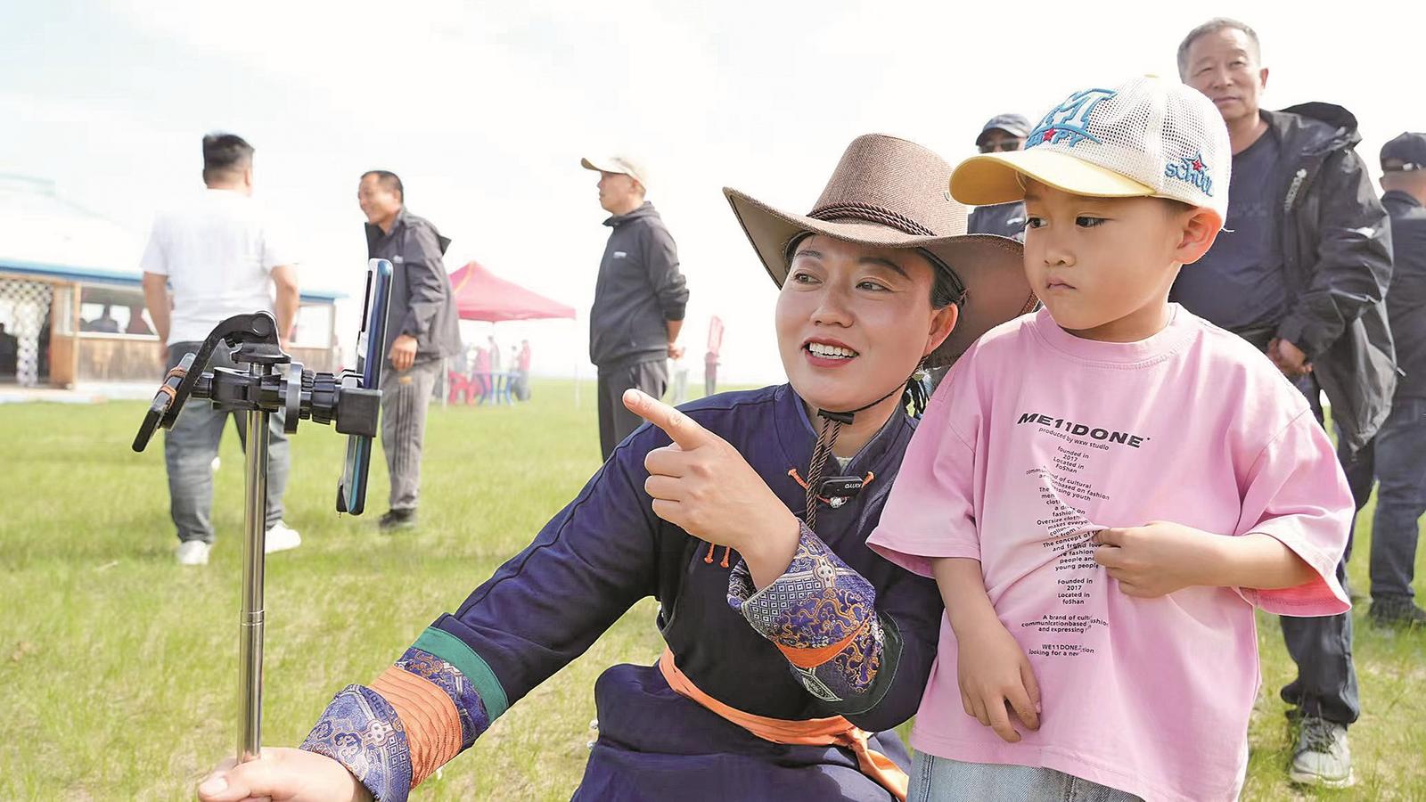 牧民网红在线直播介绍草原 王化勇 摄