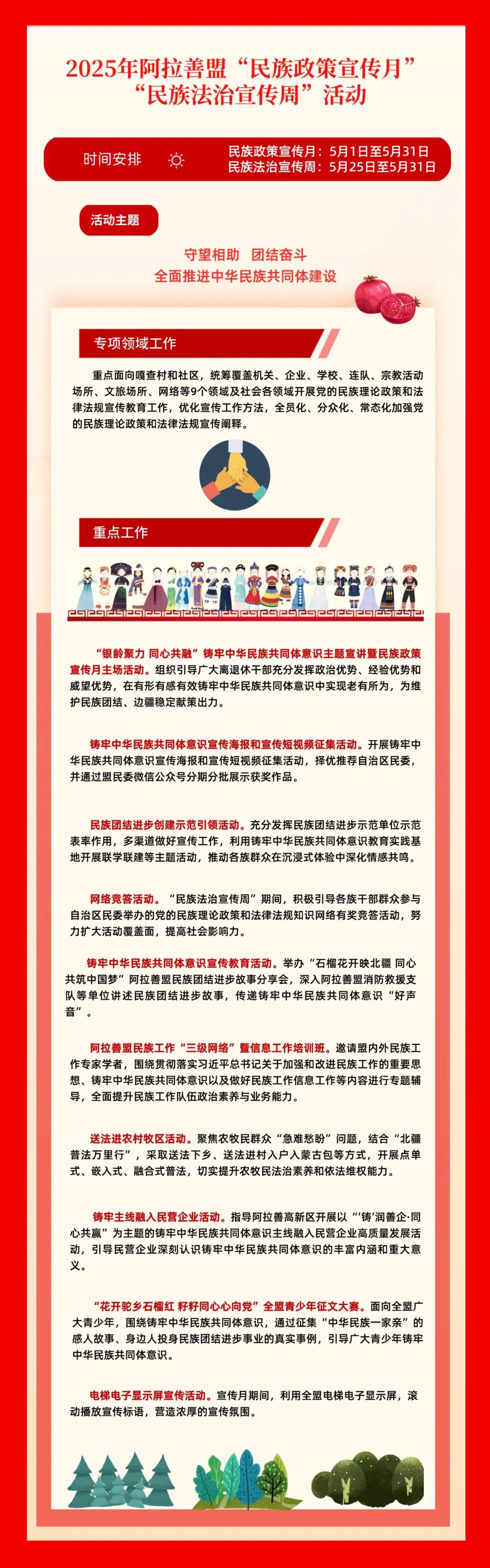 一图读懂|2025年阿拉善盟“民族ld体育中国官方网站宣传月”“民族法治宣传周”活动