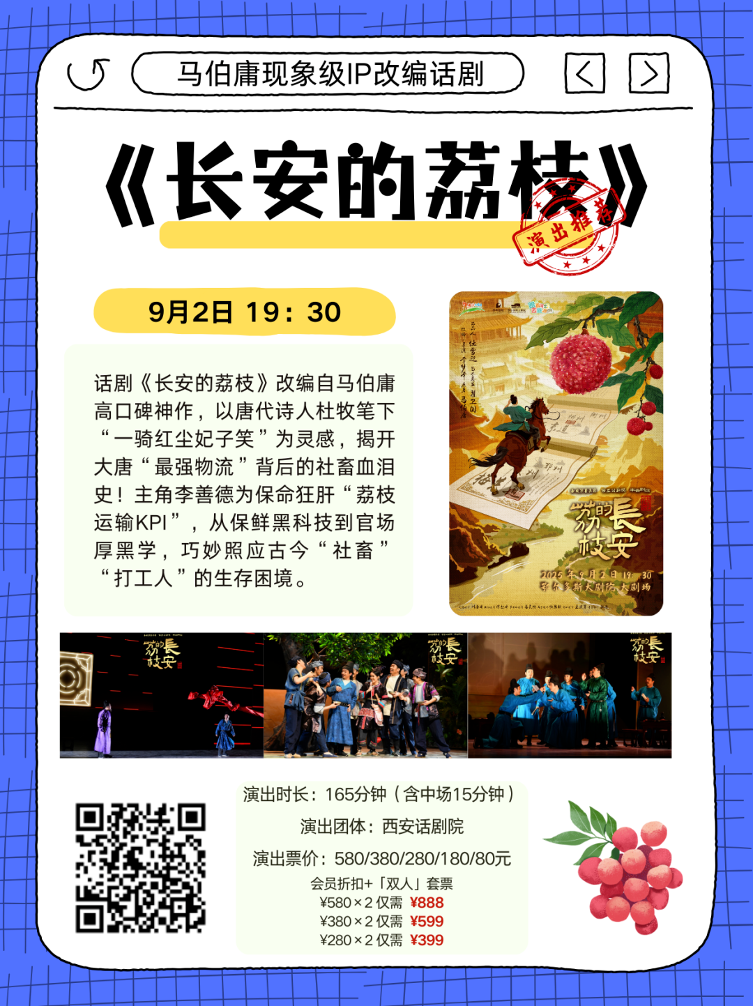 1️⃣9月2日 马伯庸现象级IP改编话剧《长安的荔枝》