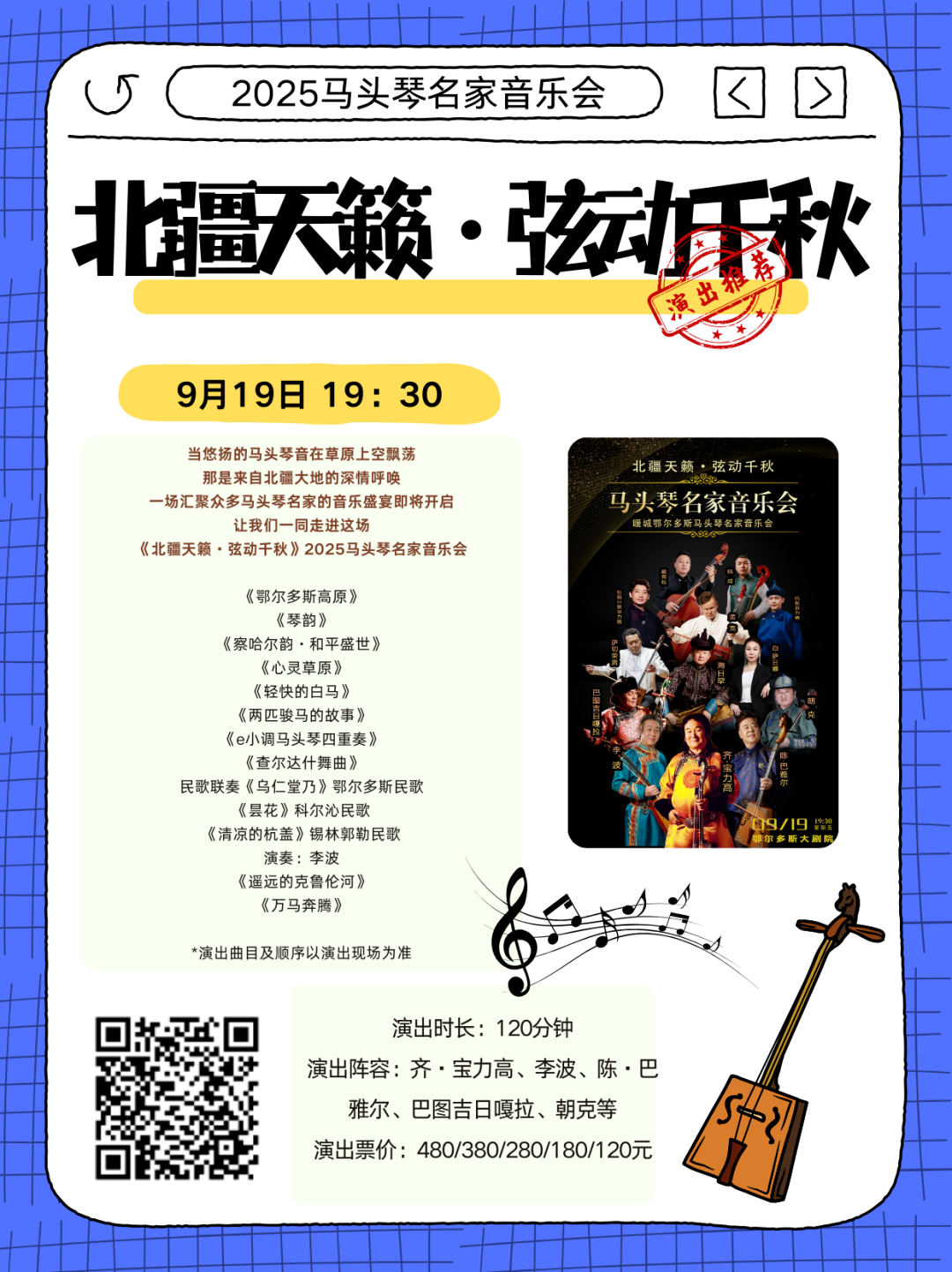3️⃣9月19日 北疆天籁·弦动千秋2025马头琴名家音乐会