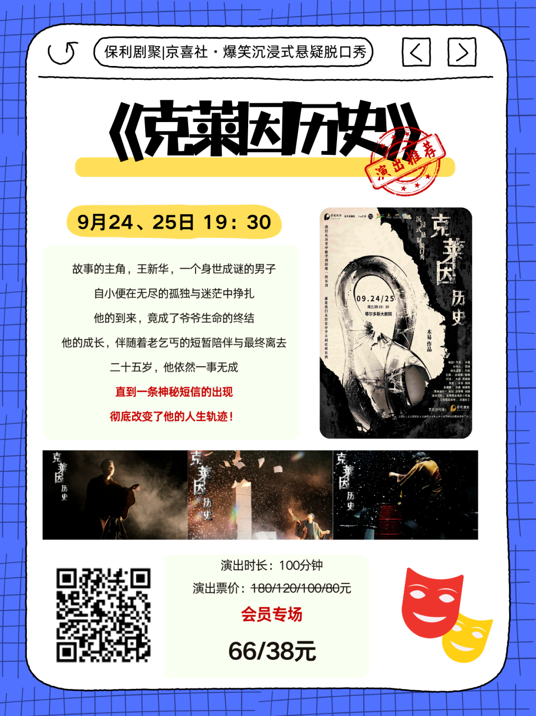 5️⃣9月24、25日 保利剧聚|京喜社·爆笑沉浸式悬疑脱口秀《克莱因历史》