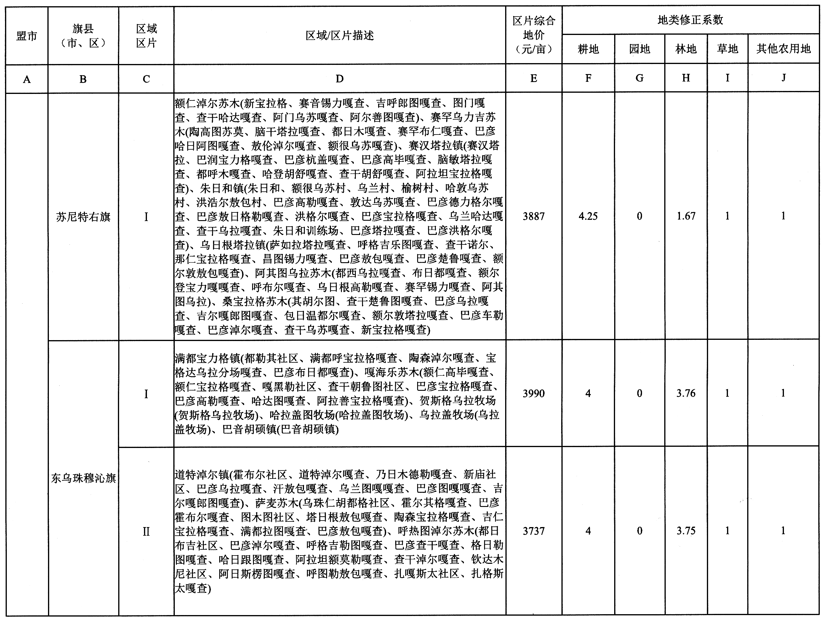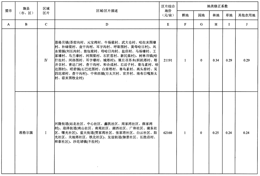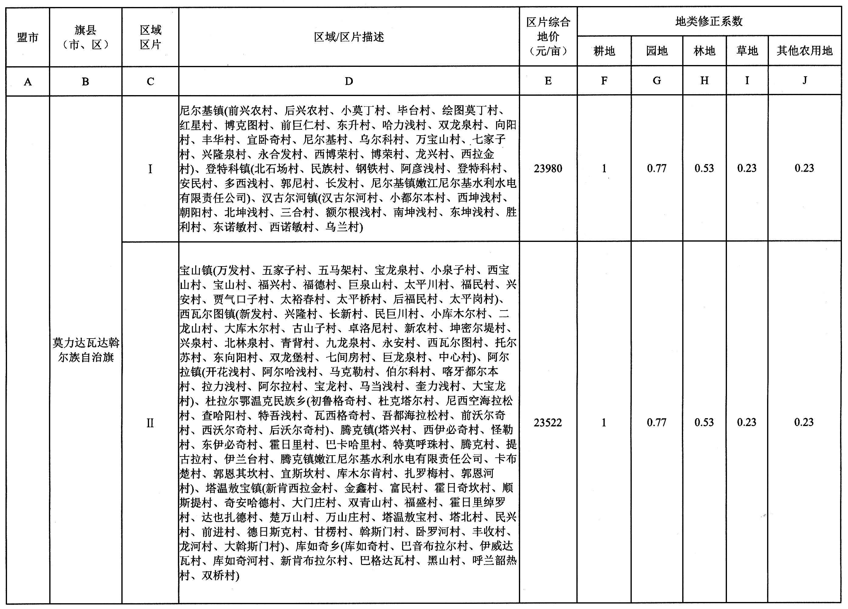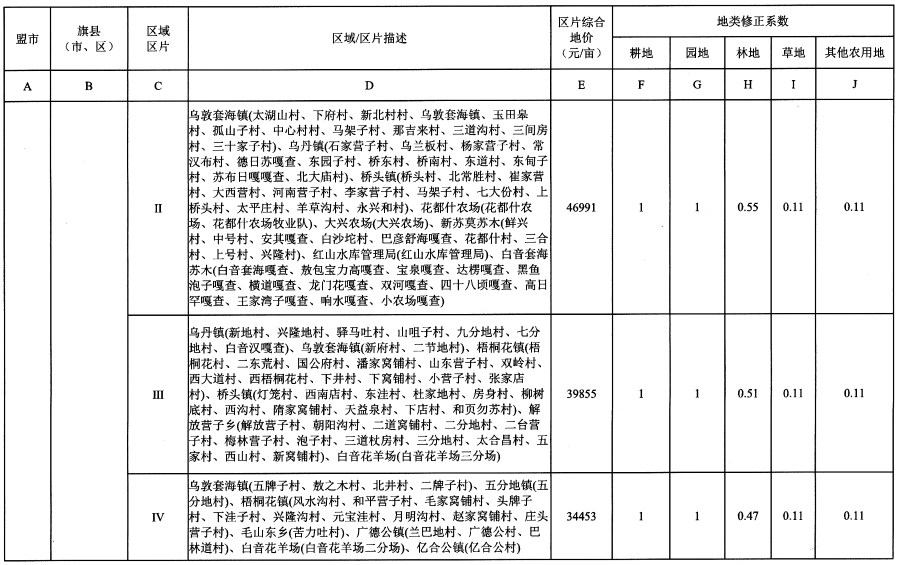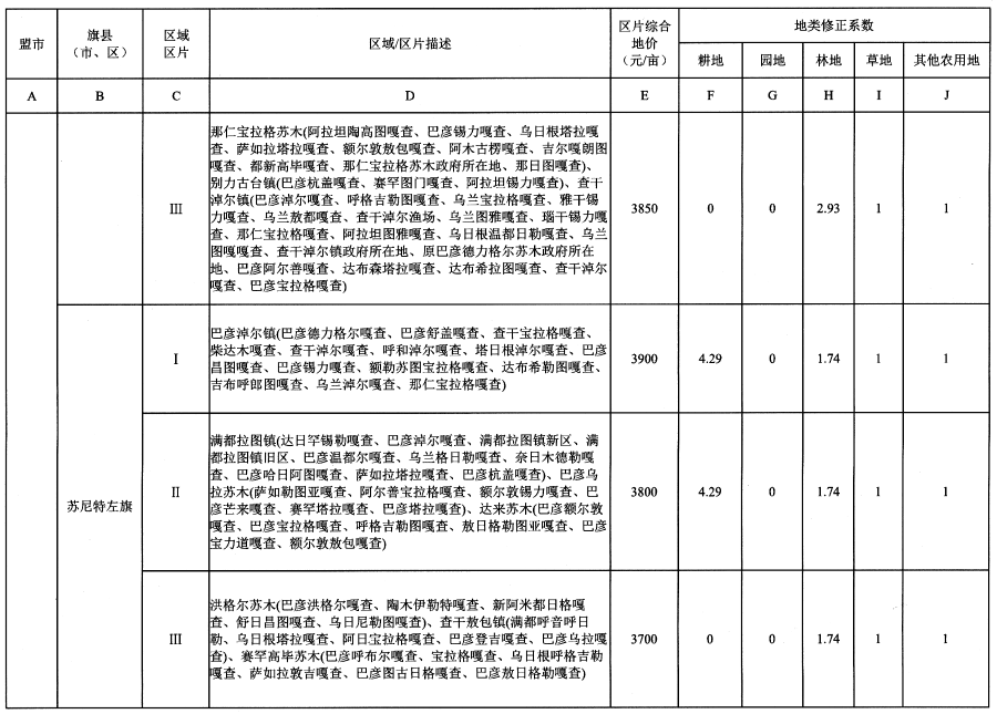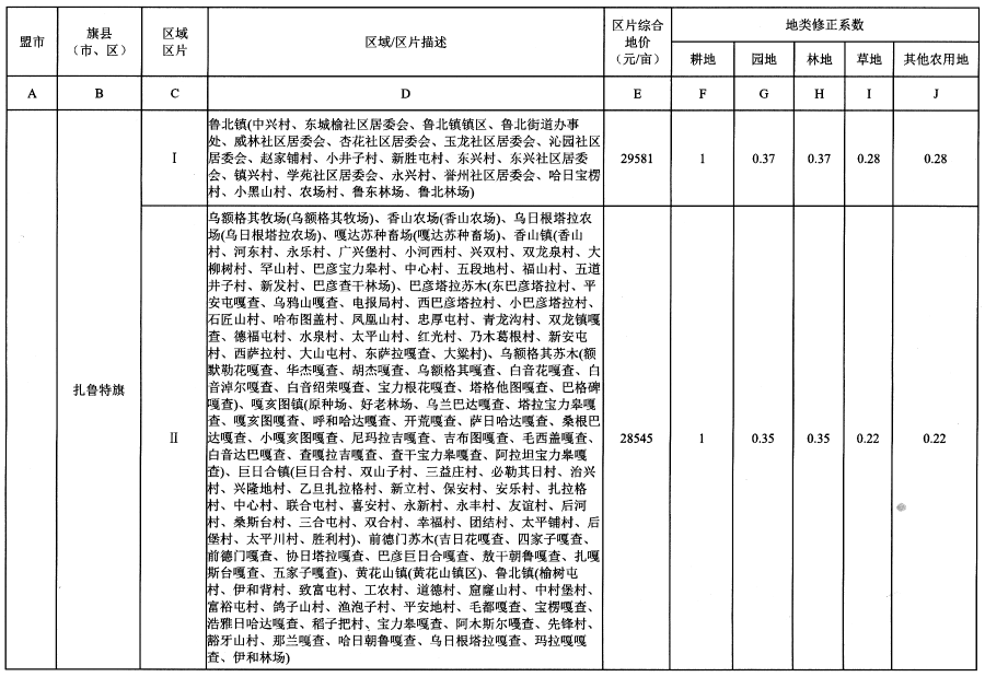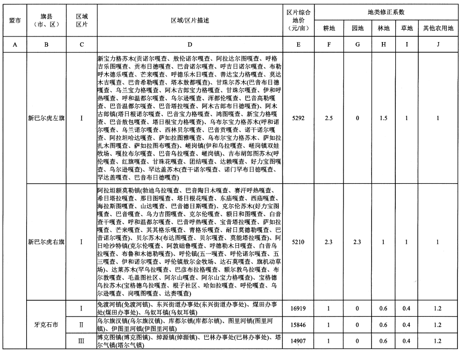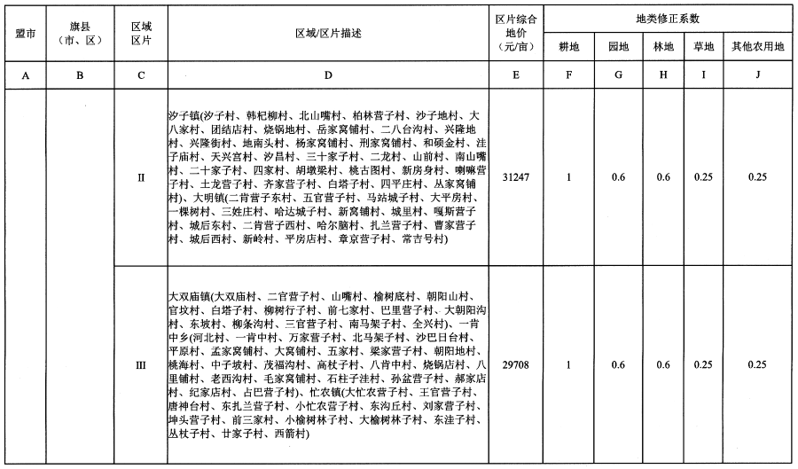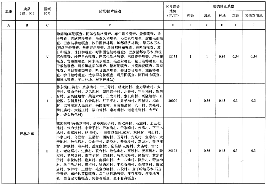 此次公布中未明确具体区片的苏木乡镇或者嘎查村组,征地补偿标准按该苏木乡镇所属旗县(市、区)或者该嘎查村组所属苏木乡镇的最高补偿标准执行。征收涉及永久基本农田的,按照所属旗县(市、区)最高标准补偿执行。