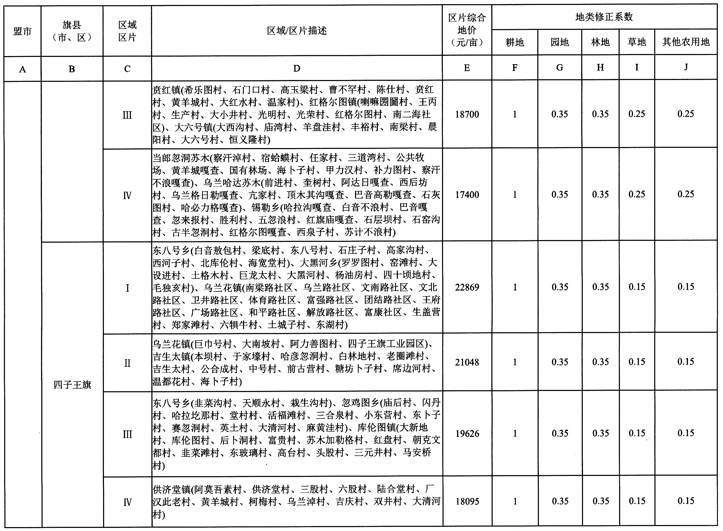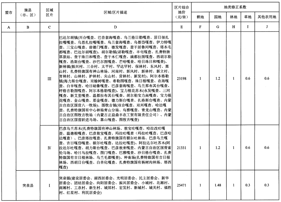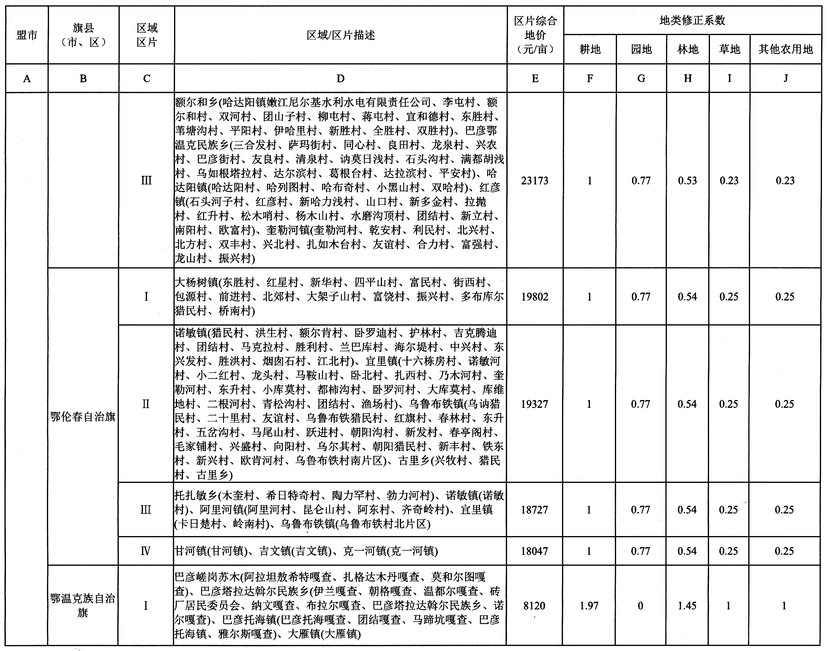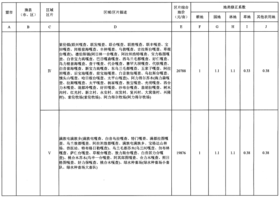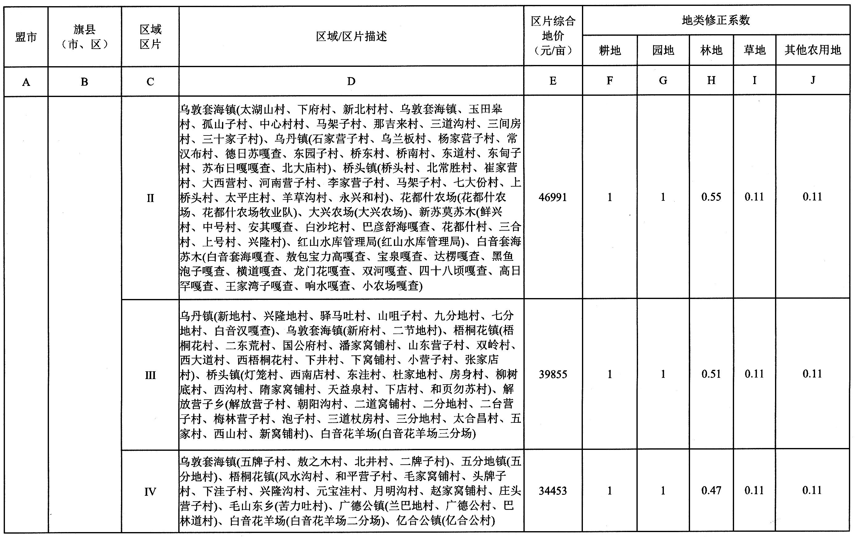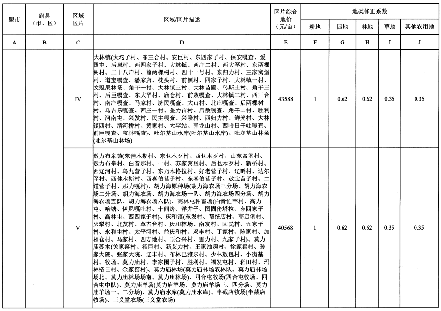 此次公布中未明确具体区片的苏木乡镇或者嘎查村组,征地补偿标准按该苏木乡镇所属旗县(市、区)或者该嘎查村组所属苏木乡镇的最高补偿标准执行。征收涉及永久基本农田的,按照所属旗县(市、区)最高标准补偿执行。