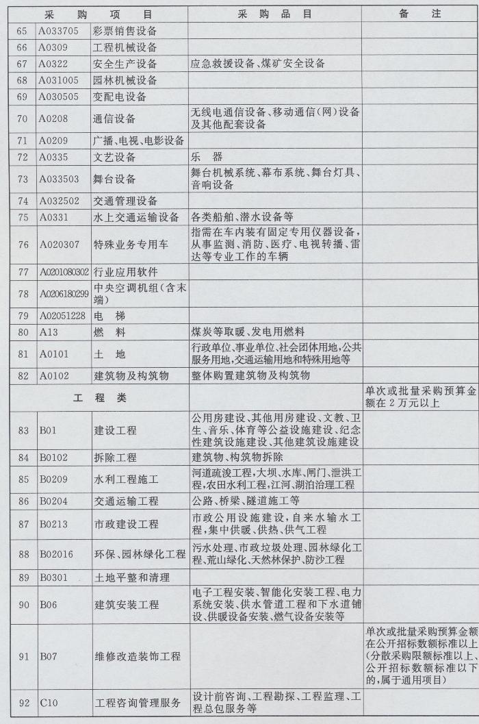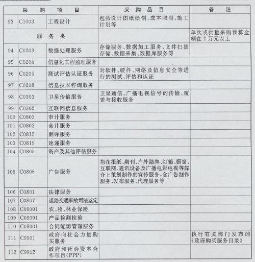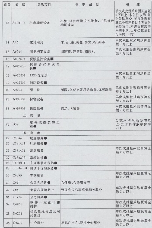 集中采购目录、限额标准和公开招标数额标准