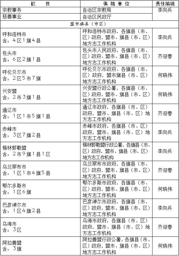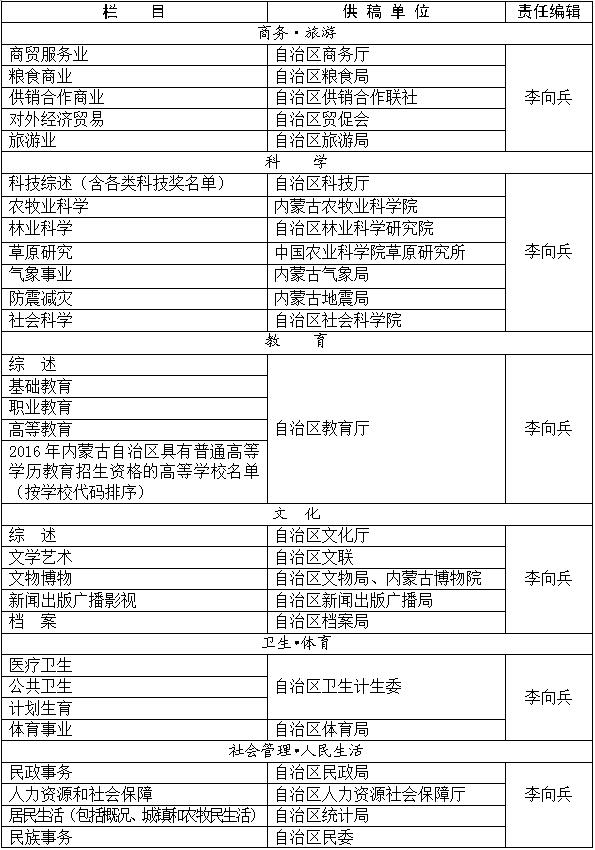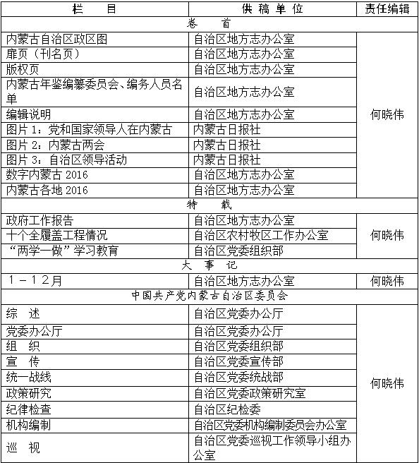 2.《内蒙古年鉴》2017卷栏目及组稿任务分配表