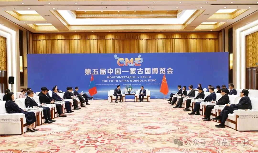 乌其尔勒对第五届中国—蒙古国博览会成功开幕表示祝贺。他说,内蒙古在推动蒙中全面战略伙伴关系发展中占有重要地位,双方在经贸往来、煤炭交易、人文交流等方面合作密切、前景广阔,能够为达成两国元首确定的200亿美元双边贸易目标作出更大贡献。蒙古国希望在口岸跨境铁路建设、扩大煤炭出口、海关检验检疫、拓展出口品类等方面进一步深化与内蒙古的合作,实现互利共赢。蒙方愿意通过政府出口促进工作组与内蒙古有关方面加强沟通,解决合作中的问题,推动拓展经贸往来。