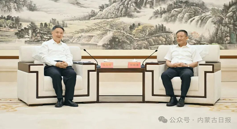 9月1日,自治区党委书记孙绍骋在呼和浩特会见中国华能集团有限公司党组书记、董事长温枢刚。草原云·内蒙古新闻网记者马建兵 摄