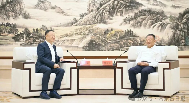 9月12日,自治区党委书记孙绍骋在呼和浩特会见宝丰集团董事长党彦宝。草原云·内蒙古新闻网记者马建兵 摄