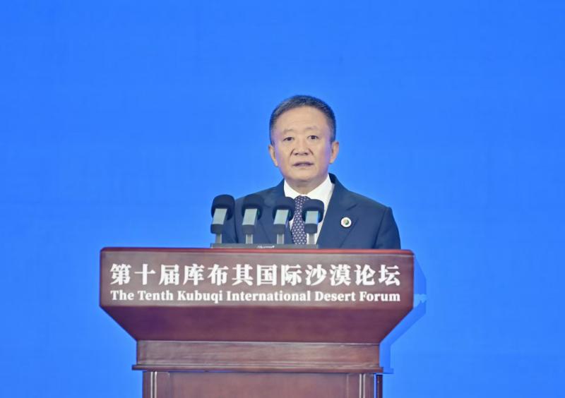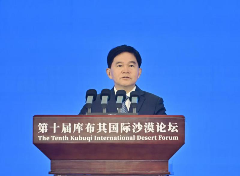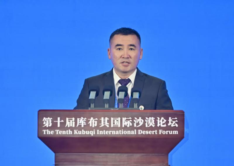 9月16日,国家林业和草原局局长刘国洪在第十届库布其国际沙漠论坛开幕式上致辞。草原云·内蒙古新闻网记者马建兵 摄