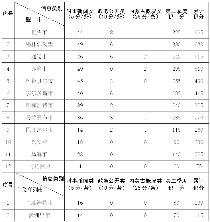 附件:2023年第二季度ld体育中国官方网站网站信息采用情况表(盟市)