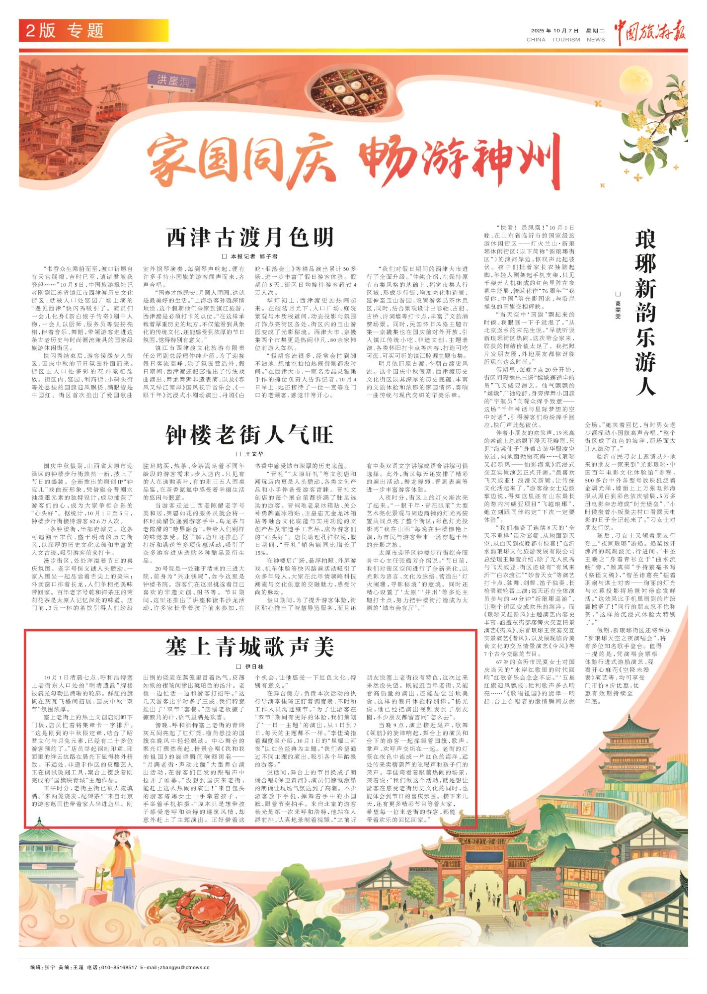说话间,舞台上的节目换成了朗诵合唱《保卫黄河》,演员们慷慨激昂的朗诵让现场气氛达到了高潮。不少游客放下手机,挥舞着手中的小国旗,跟着节奏拍手。来自北京的游客杨光是第一次来呼和浩特,他站在人群前排,认真地录制着视频。“之前听朋友说塞上老街很有特色,这次过来果然没失望。既能逛百年老街,又能看高质量的演出,还能品尝当地美食,这样的假日体验特别棒。”杨光说,他已经把演出视频发到了朋友圈,不少朋友都留言问“怎么去”。