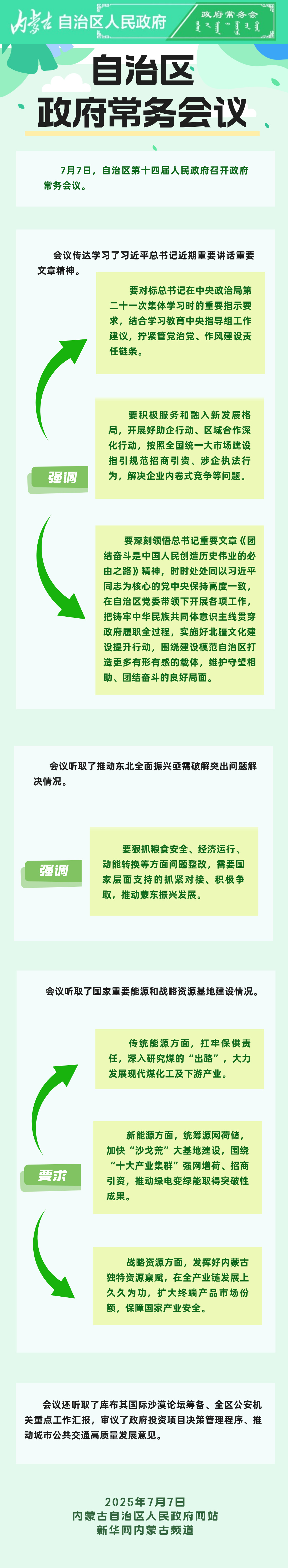 7月7日,自治区第十四届人民政府召开政府常务会议。