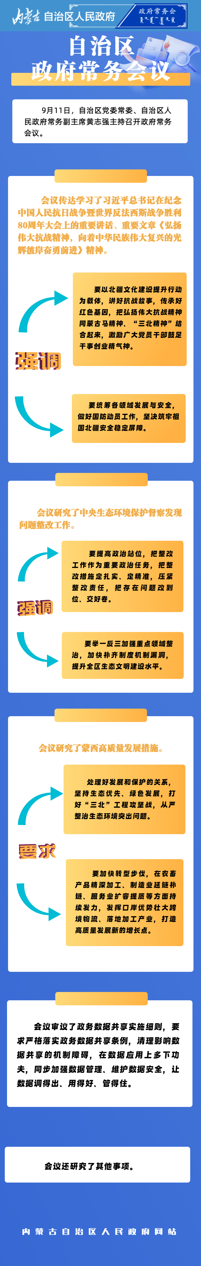9月11日,自治区党委常委、自治区人民政府常务副主席黄志强主持召开政府常务会议。