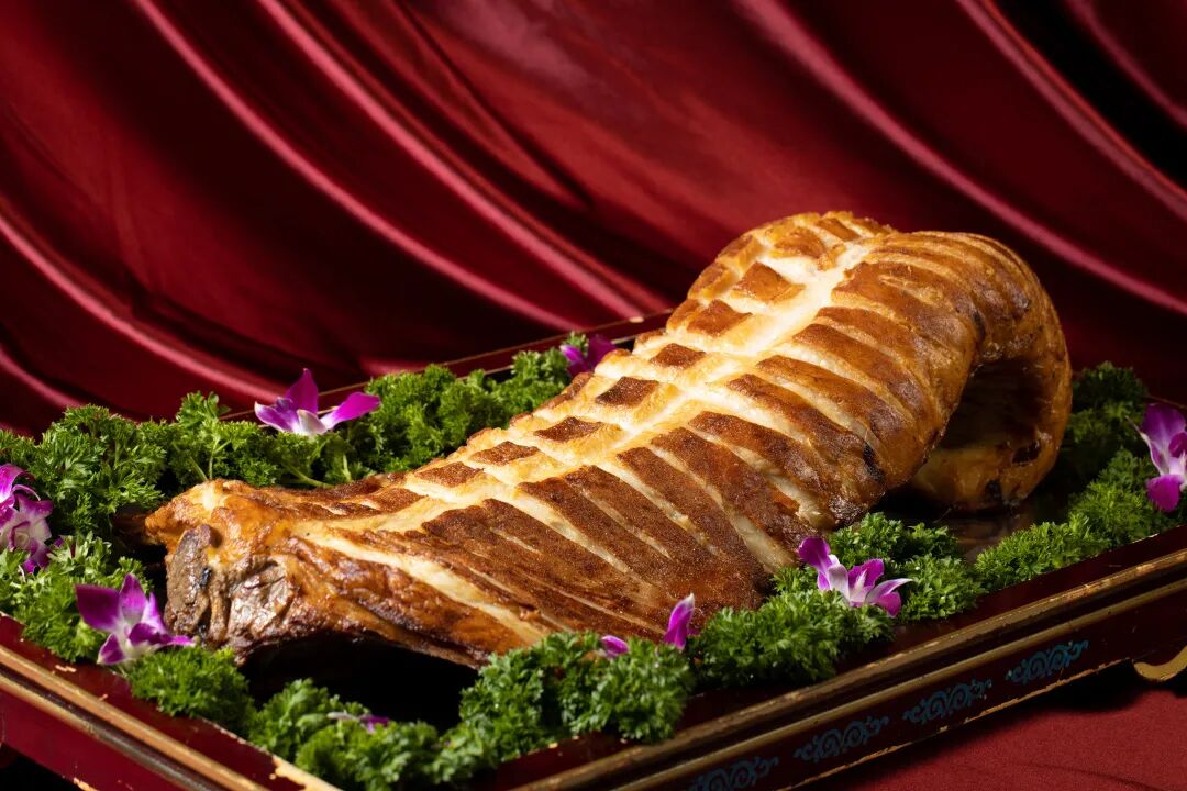 烤羊背是赤峰地区蒙古族接待尊贵客人的一道传统名菜,是全羊中的上品菜。赤峰烤羊背选用的是当地游牧散养的肥嫩罕山羊,经过复杂的刀工处理之后再腌制上色,赤峰烤羊背的独到之处就在于此。入味后放入特制烤炉中烤四到五个小时,羊背表皮在刀痕处龟裂开来,香气四溢、色泽红润、皮酥肉嫩、酥香可口、毫无腥膻。烤羊背最重要的步骤是上菜的仪式,盛装的器皿,豪放的酒歌,醇正的奶酒,洁白的哈达组成的整套烤羊背仪式,已经超越菜品本身成为蒙古族饮食文化的表达方式。再配上赤峰人与生俱来的语言天赋和热情好客更让烤羊背充满了浓郁赤峰峰味。