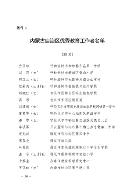 内蒙古自治区优秀教育工作者名单