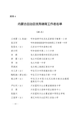 内蒙古自治区优秀德育工作者名单