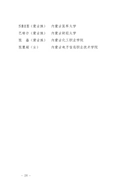 苏雅拉图(蒙古族) 内蒙古医科大学 巴特尔(蒙古族) 内蒙古财经大学 张 磊(蒙古族) 内蒙古化工职业学院 张慧超(女) 内蒙古电子信息职业技术学院 - 24 -