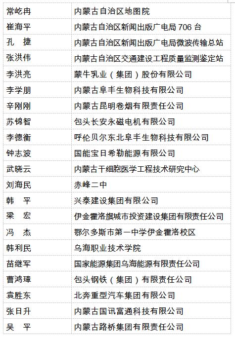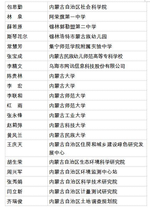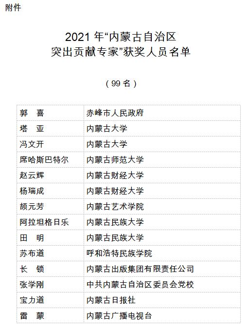 附件:2021年“内蒙古自治区突出贡献专家”获奖人员名单