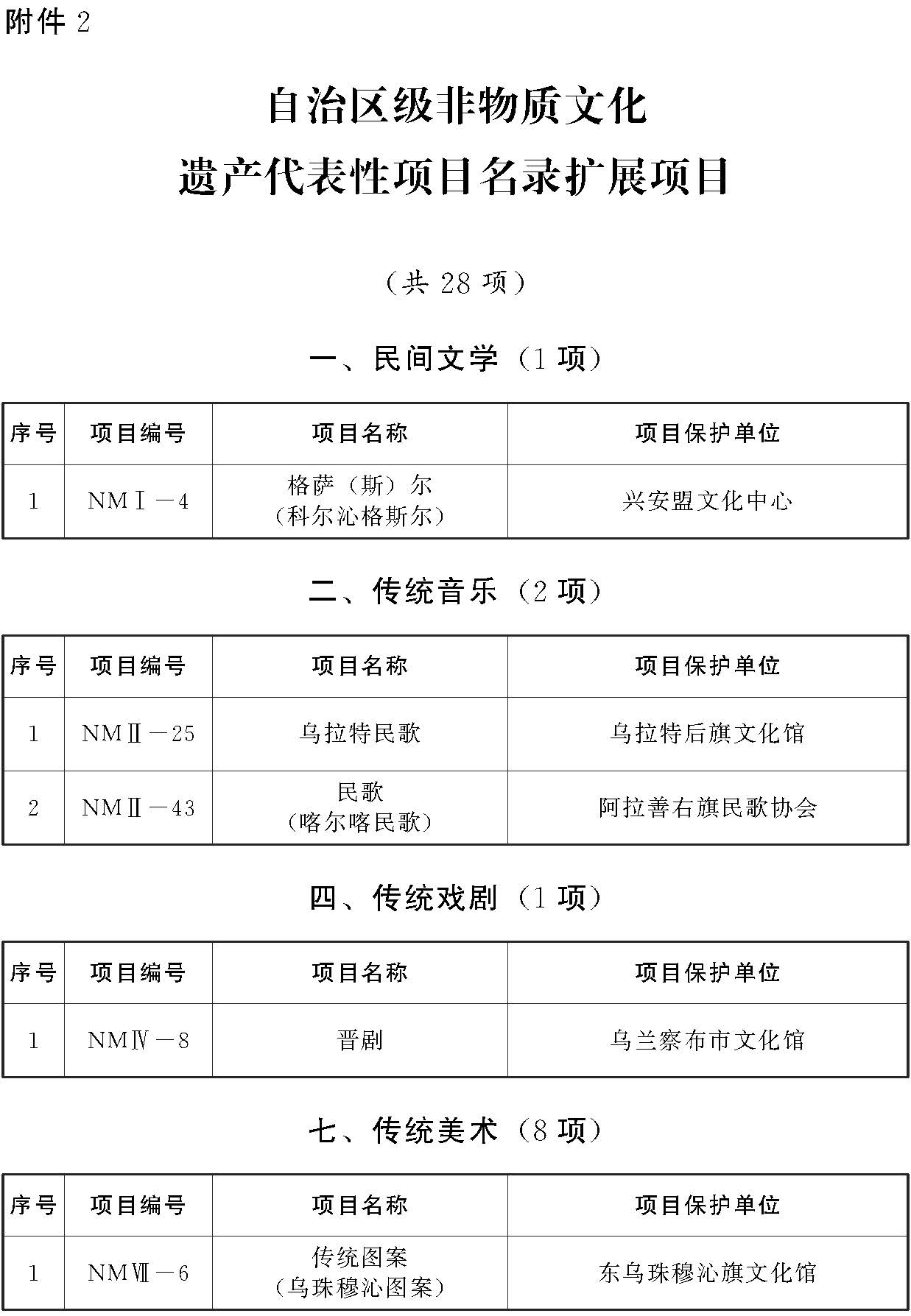 2.自治区级非物质文化遗产代表性项目名录扩展项目(共28项)