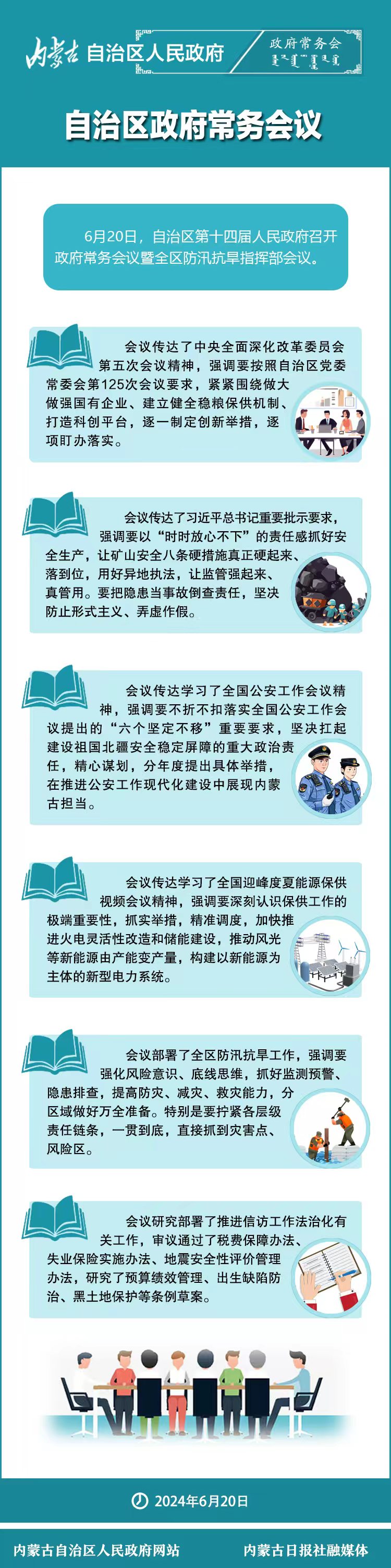 6月20日,自治区第十四届人民政府召开政府常务会议暨全区防汛抗旱指挥部会议。